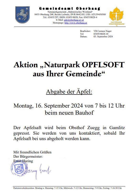 Geschätzte Bürger der Gemeinde Oberhaag!